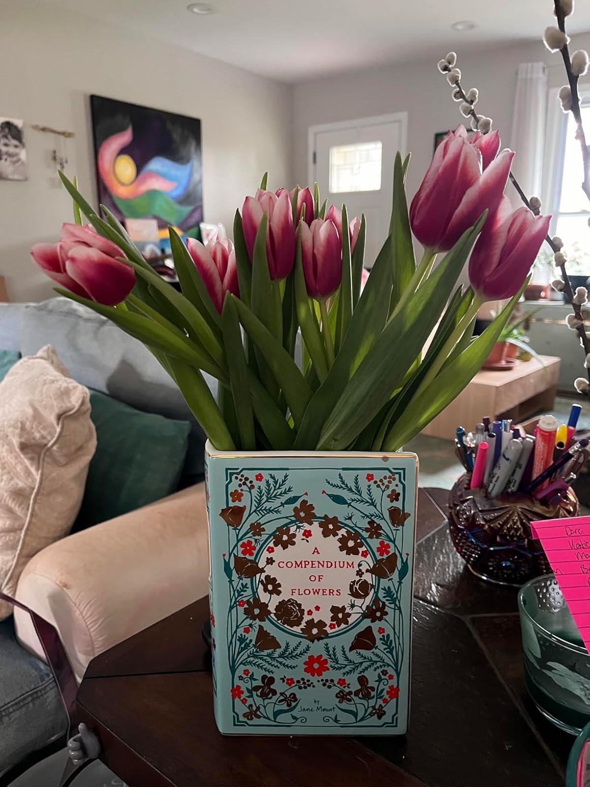 - Fill this ceramic vase with fresh flowers to add literary charm to any room. Illustrated by avowed bibliophile Jane Mount and adorned with elegant touches of gold, it’s the perfect gift for book lovers. The vase measures 5 3/8 x 8 x 2 1/2 inches and features this inspiring quote by Oscar Wilde on the back: “With freedom, books, flowers, and the moon, who could not be happy?”