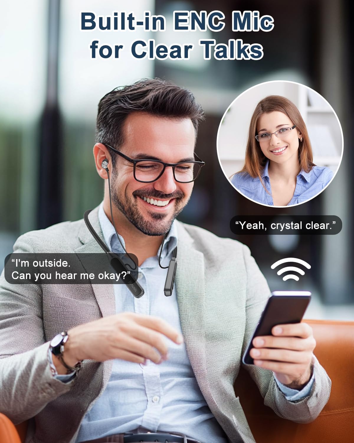 - 【Bluetooth 5.4 Earbuds】The neckband Bluetooth earbuds supports low-latency transmission and dual device connections. You could seamlessly enjoy music or watch videos between your laptop and cellphone. Great for gaming and multi-tasking