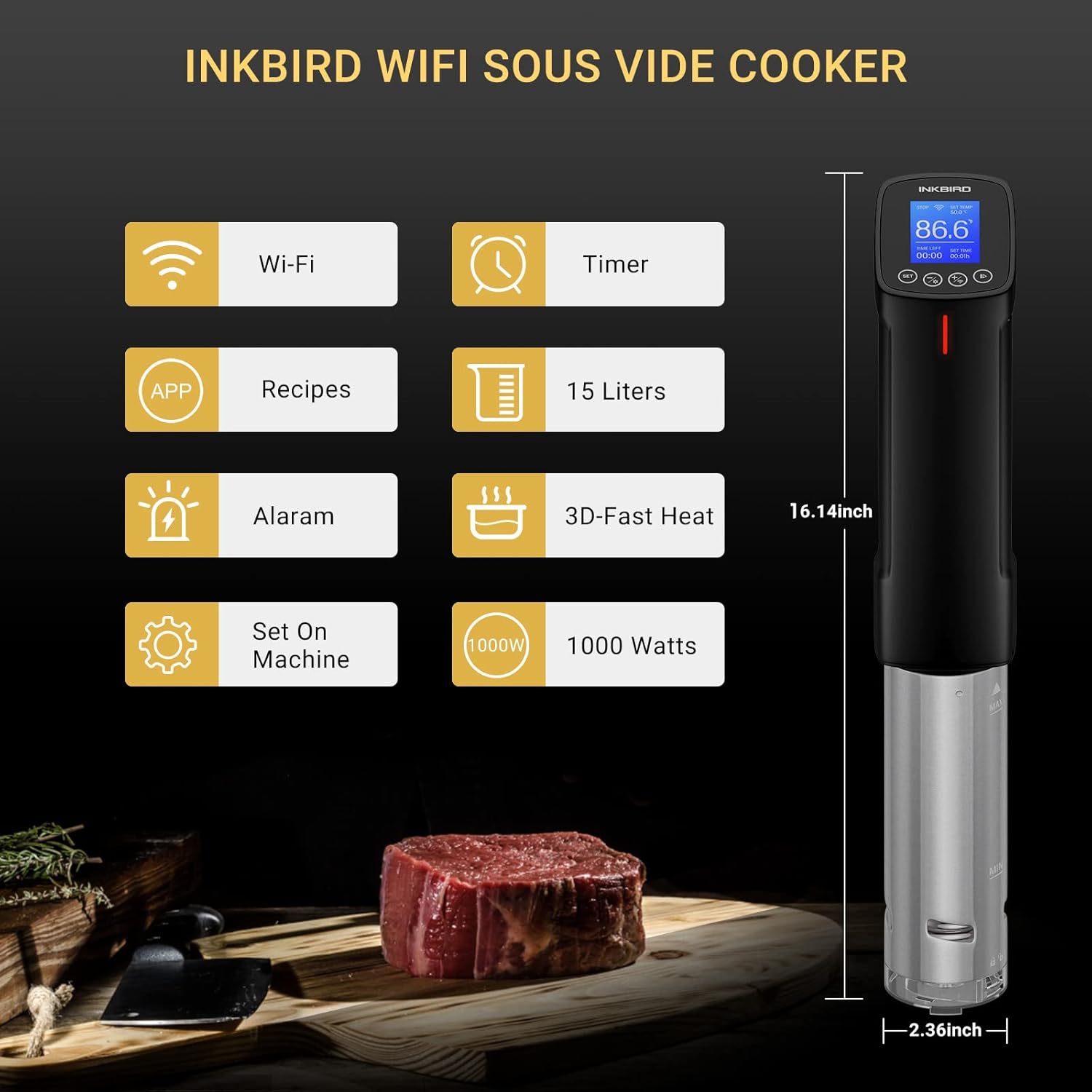 • 2.4GHz Wifi Sous Vide Cooker: Download the InkBird Pro app for free and connect the Sous Vide to a 2.4GHz Wi-Fi network, then you could set and monitor the Sous Vide on your phone wherever you are