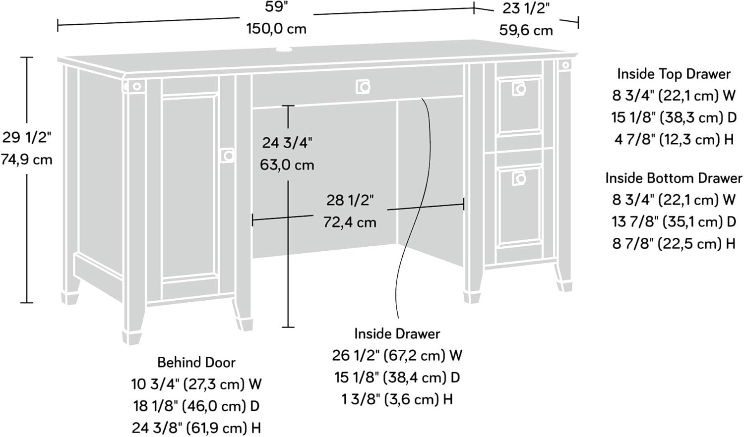 Sauder Carson Forge Rustic Vintage Computer Desk with Drawers Storage, 59.06″ L x 23.47″ W x 29.53″ H, Washington Cherry