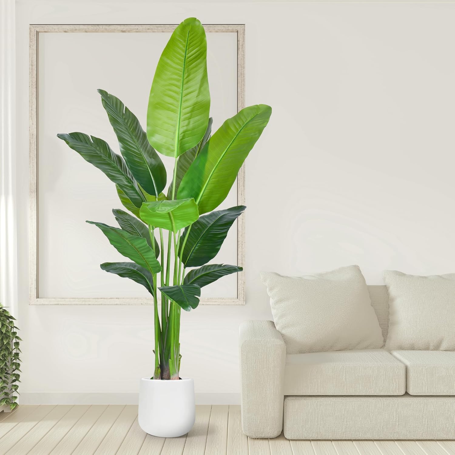 • 【Realistic Faux Tropical Plants】: Do you want some green to light and refresh your home? This artificial tree will solve your problem! Elegant Artificial Bird of Paradise tree Adopting an integrated tree stem structure with textured root design and 3D printed realistic leaves, creating a natural plant shape that brings you closer to nature. Suitable for capturing the appearance and feeling of lovely tropical palm trees anywhere. Artificial tree is green all year round.