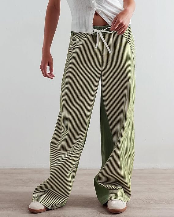 Low Rise Striped Pants for Women Pull On Drawstring Boho Wide Leg Jeans Trendy 2025