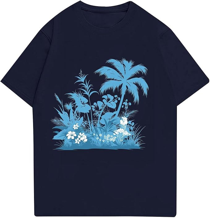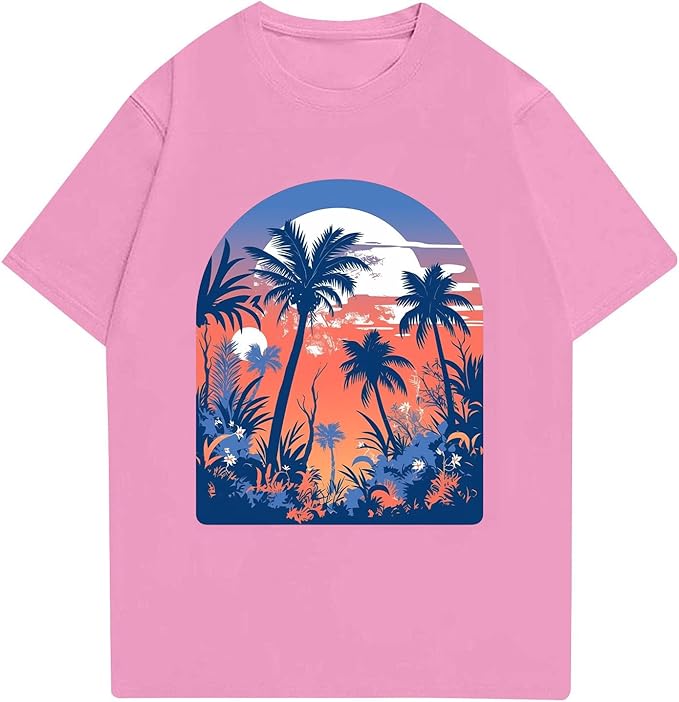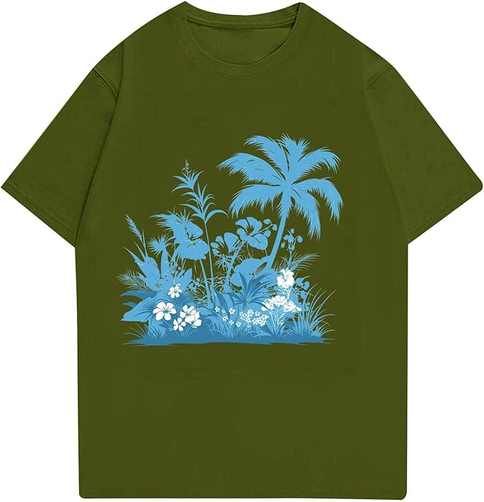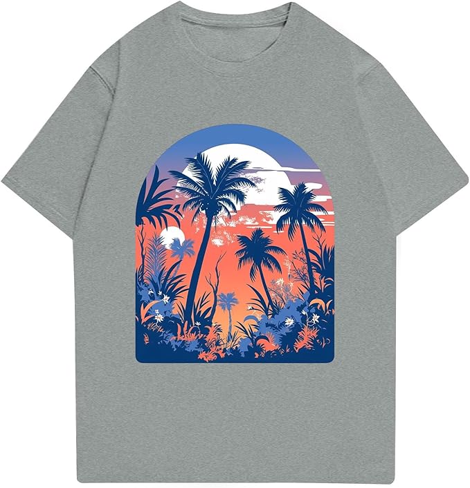 WENKOMG1 Graphic Tees for Men Plam Trees Printed Short Sleeve Pullovers Summer Casual Round Neck Tshirt Shirts