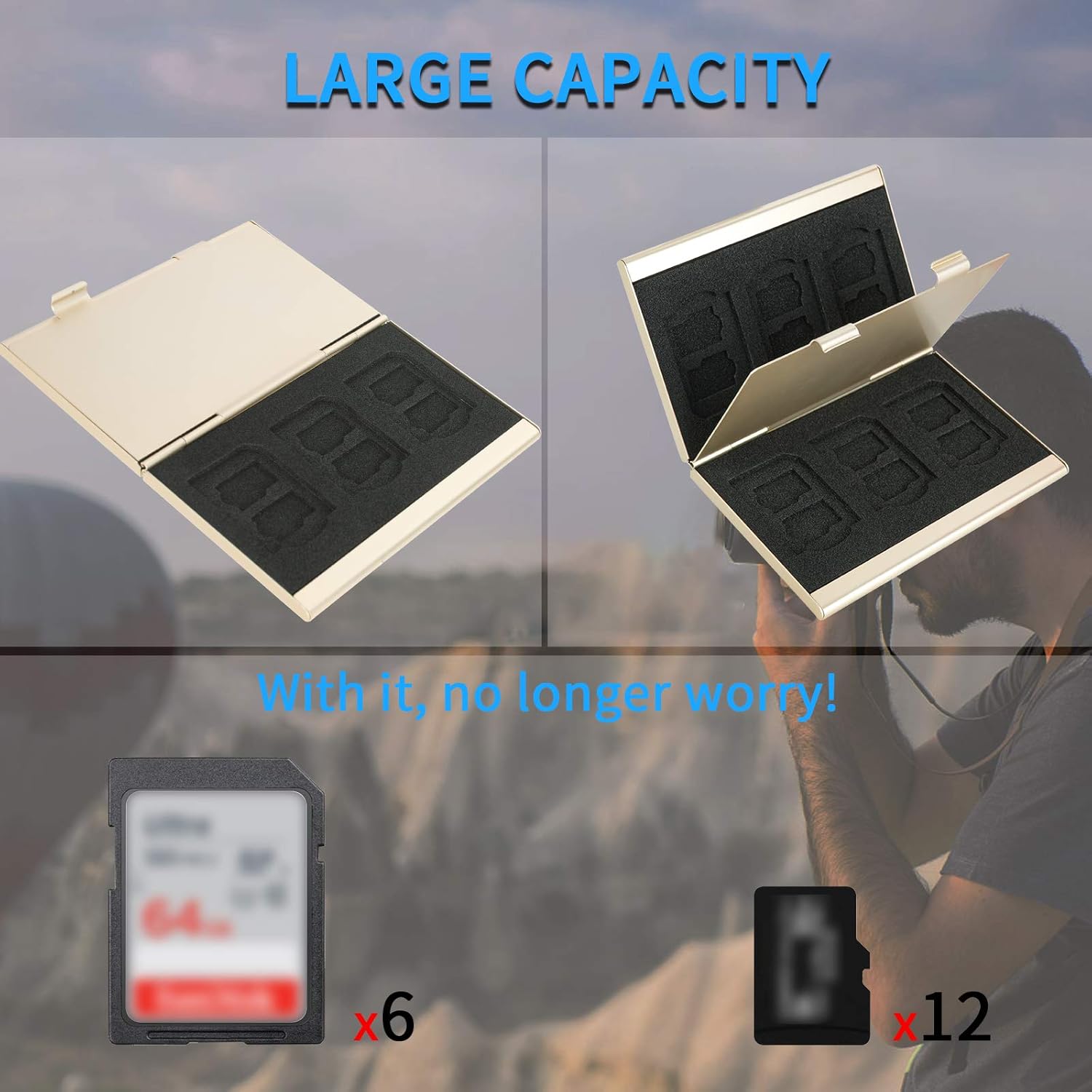 - 【LARGE CAPACITY】On the basis of the design aesthetic, the greatest degree of increase in the number of cards this SD card case. Each SD card slot is embedded with two TF card slots, with a total capacity of 6SD+12TF, allowing you to store as many memory cards as possible in a limited space.