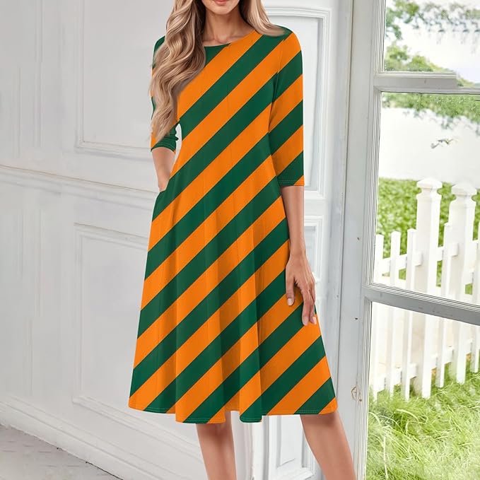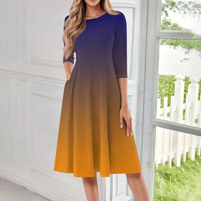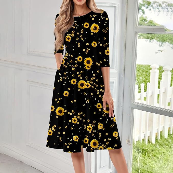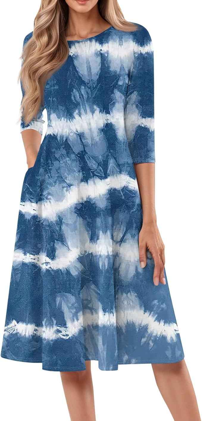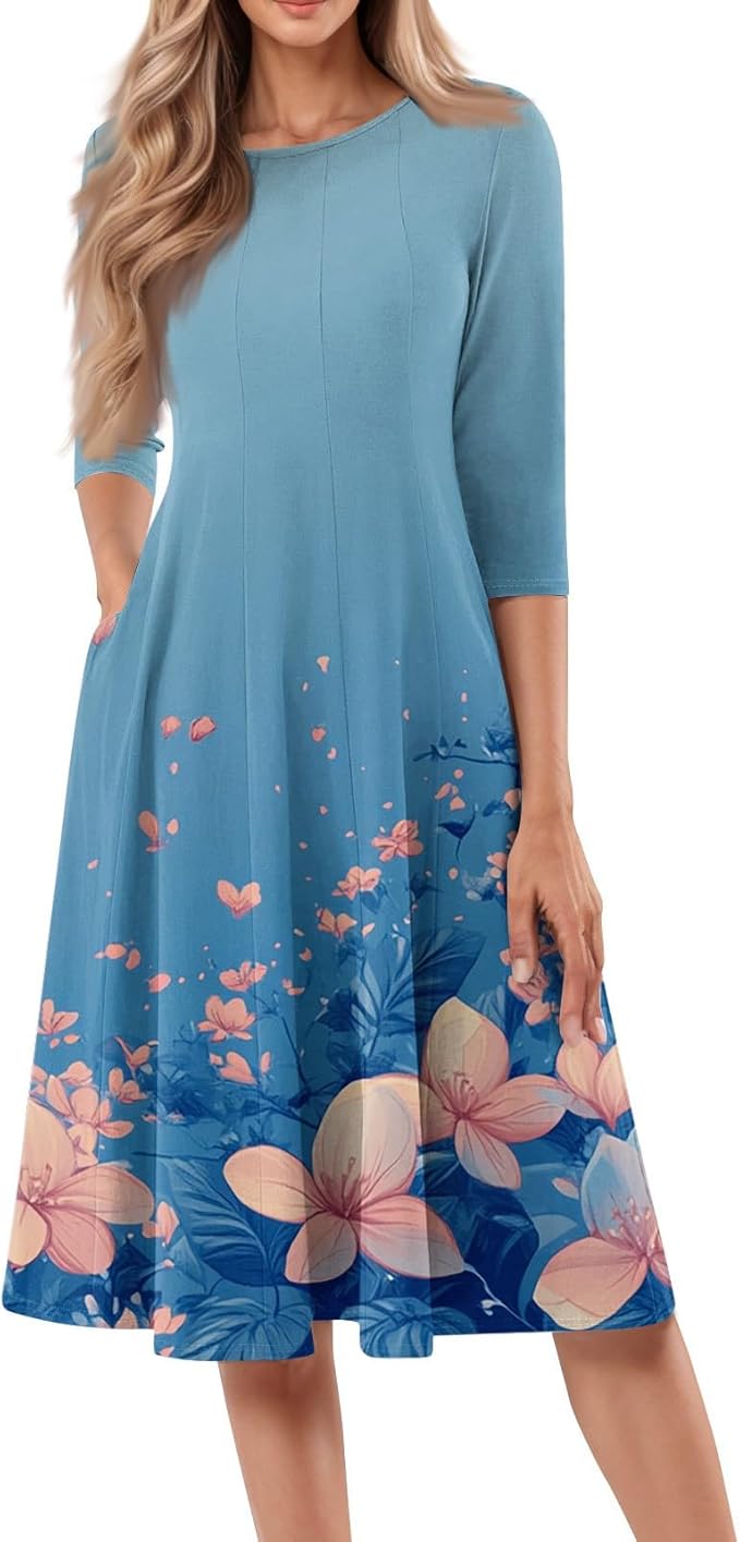 Dresses for Women 2025 Casual Summer Spring Midi Elegant Shirt Dress Knee Length Trendy Floral Sundresses 3/4 Sleeve