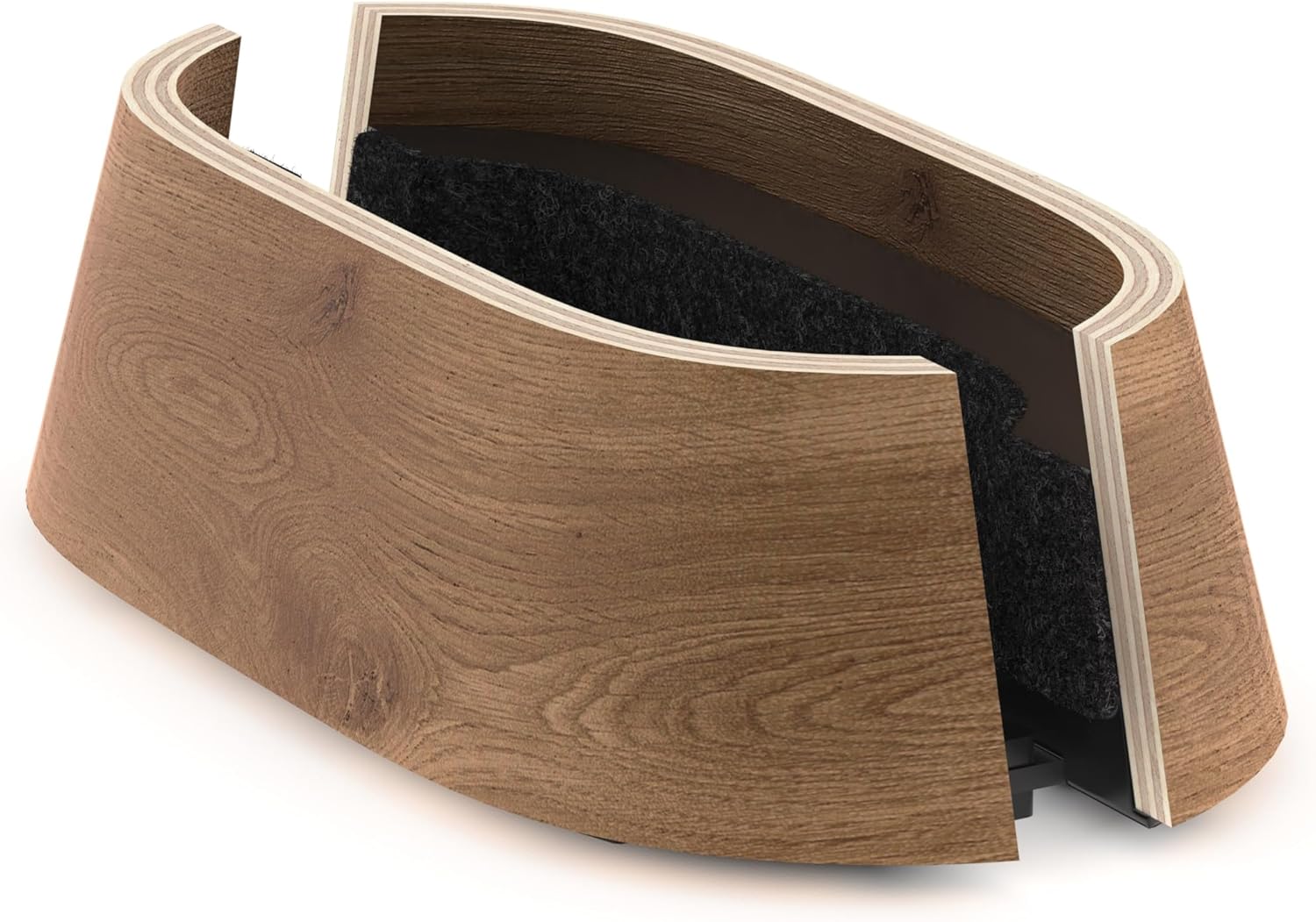 • Sleek and minimalist design is both functional and space-saving while adding a unique look and feel to your desk setup. The felt interior protects your MacBook stand and works with cases and covers. The textured exterior is made from wood with a black walnut veneer.