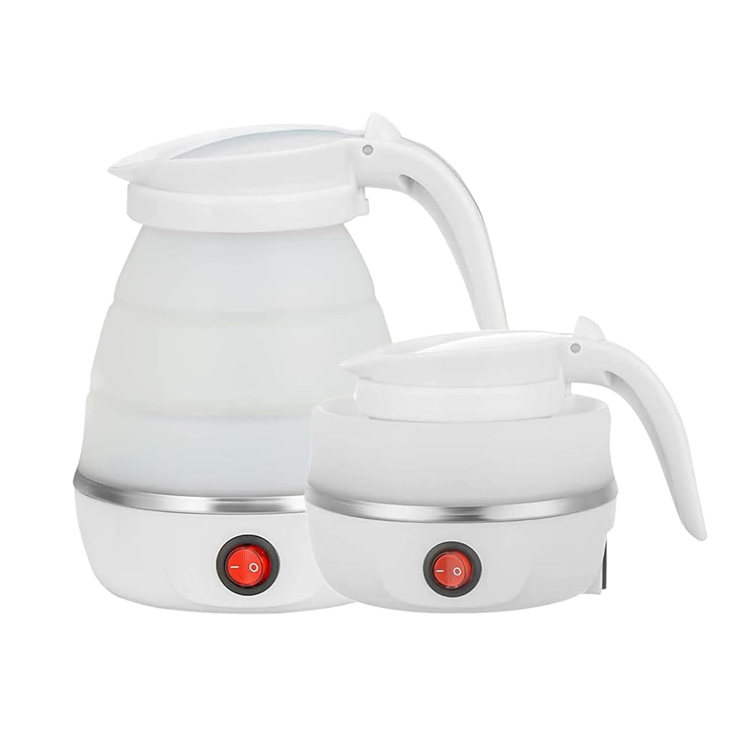 Foldable Electric Travel Kettle-Portable and Convenient Food Grade Silicone Collapsible Water Boiler and Tea Pot for Camping – Easy Storage with Detachable Power Cord (White)